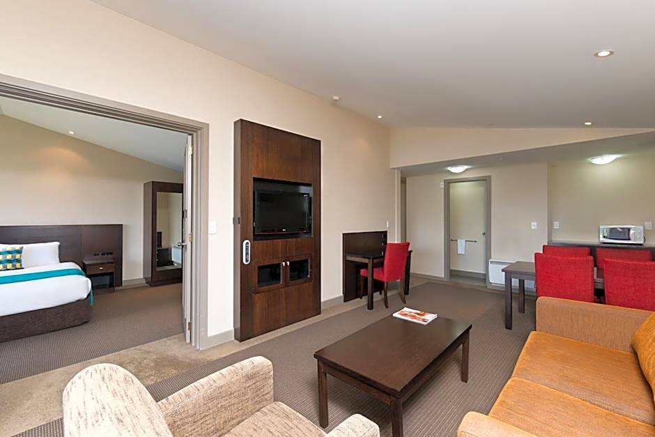 This Suite features large bay windows which frame the views of Lake Wakatipu and The Remarkables Mountain. This suite also features a separate bedroom and lounge area, a spa bath, and a spacious balcony.